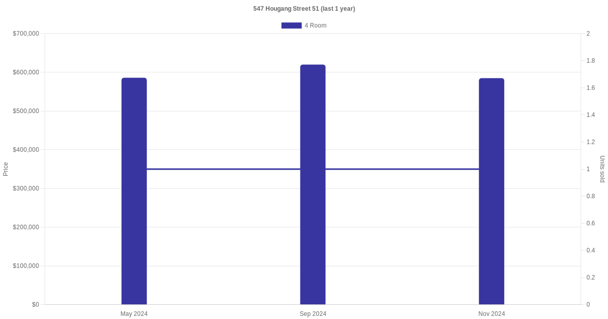 Below is a quick summary of the resale transactions volume and average price trends for the 4 room units at 547 Hougang Street 51.