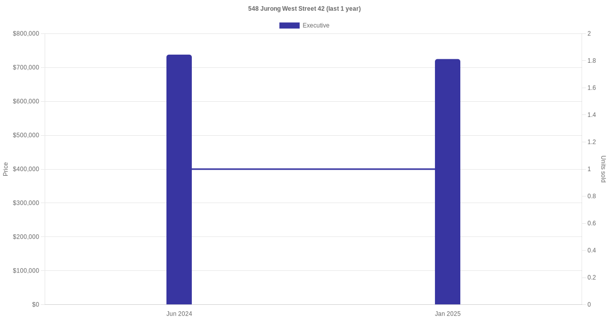 Below is a quick summary of the resale transactions volume and average price trends for the executive units at 548 Jurong West Street 42.