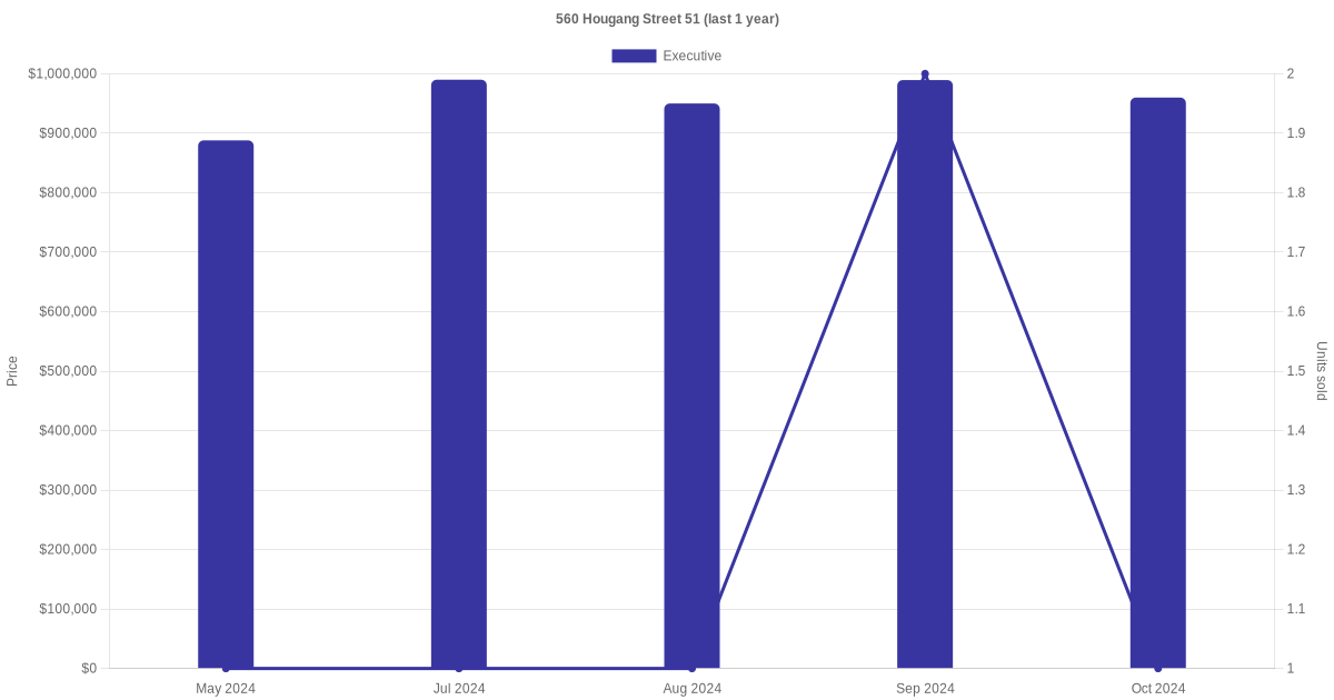 Below is a quick summary of the resale transactions volume and average price trends for the executive units at 560 Hougang Street 51.