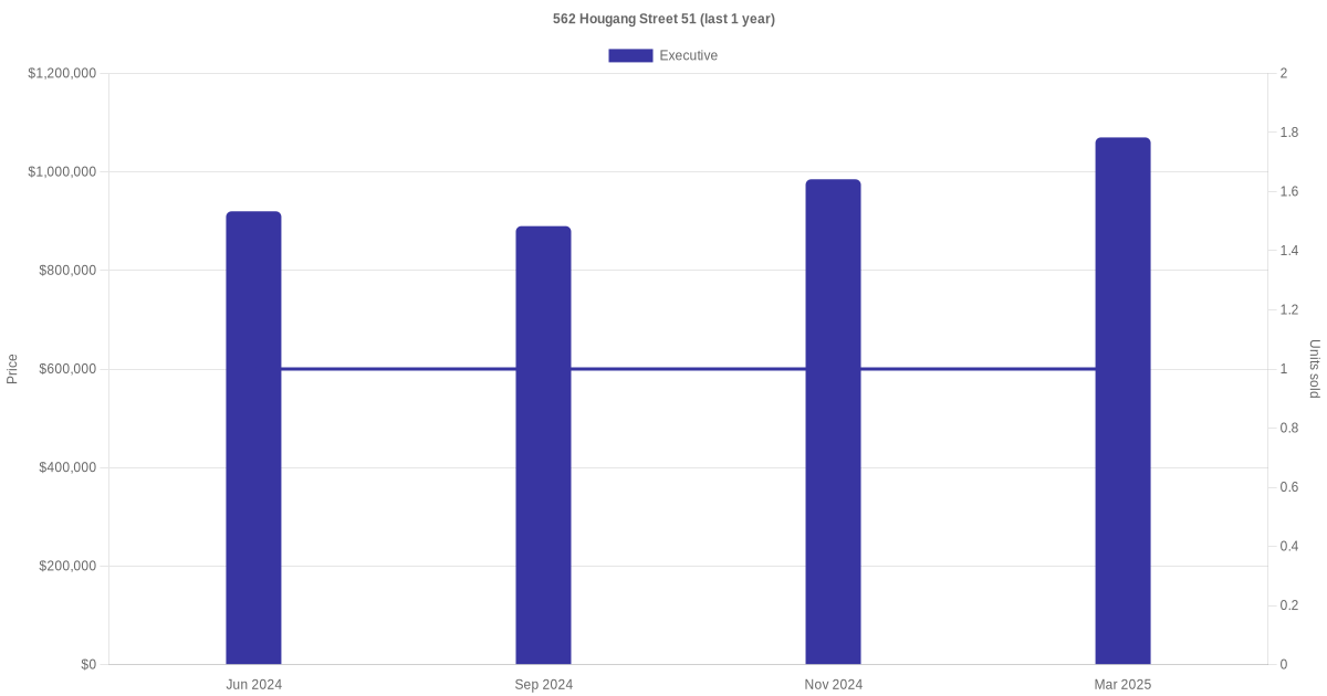 Below is a quick summary of the resale transactions volume and average price trends for the executive units at 562 Hougang Street 51.