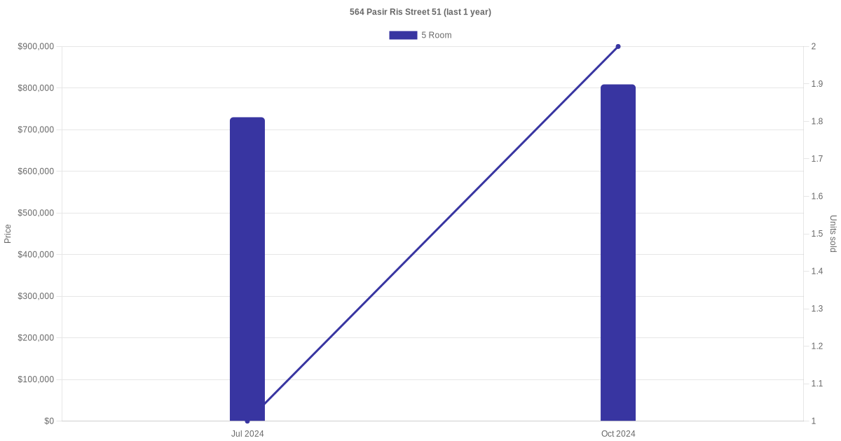 There were a total of 3 resale transactions in the last 3 years for units in block 564 Pasir Ris Street 51, with the latest one recorded in Oct 2024.