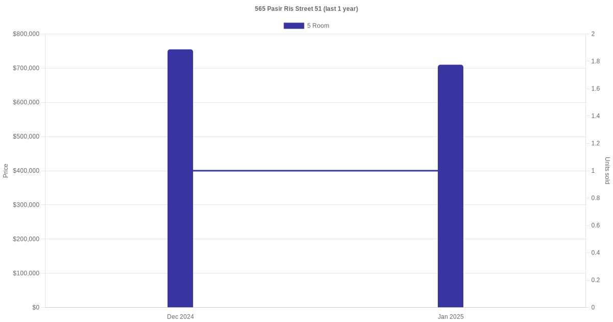 Below is a quick summary of the resale transactions volume and average price trends for the 5 room units at 565 Pasir Ris Street 51.