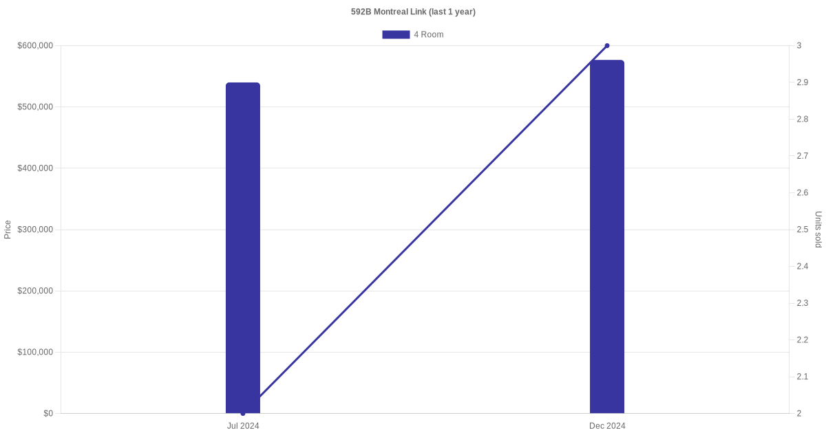 Here's a summary of the rental transactions and price trends for the 4 room units at 592B Montreal Link.
