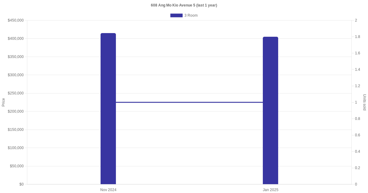 | Mar 2025 | $2,800 | 3 Room | Blk 608 Ang Mo Kio Avenue 5 3 Room | Ang Mo Kio |