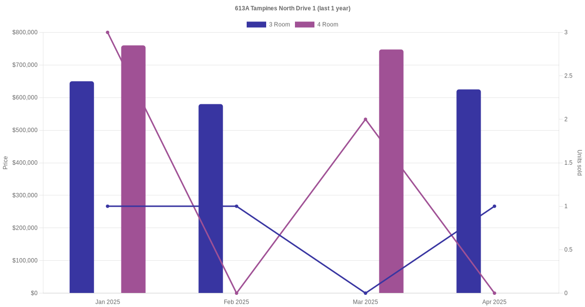 | Dec 2025 | $3,500 | 4 Room | Blk 613A Tampines North Drive 1 4 Room | Tampines |