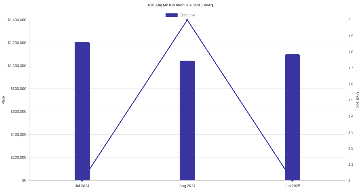Here's a summary of the rental transactions and price trends for the executive units at 616 Ang Mo Kio Avenue 4.