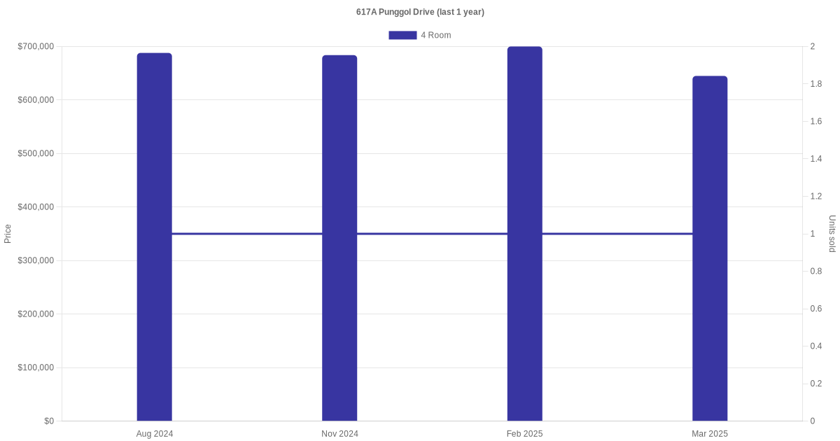There were a total of 7 resale transactions in the last 3 years for units in block 617A Punggol Drive, with the latest one recorded in Mar 2025.