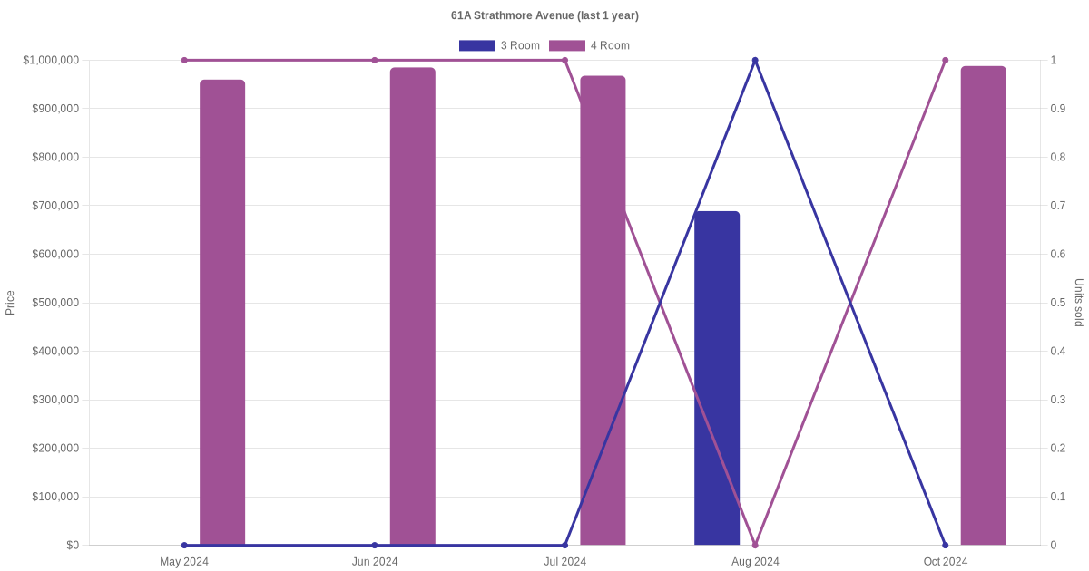 Here's a summary of the rental transactions and price trends for the 3 room and 4 room units at 61A Strathmore Avenue.
