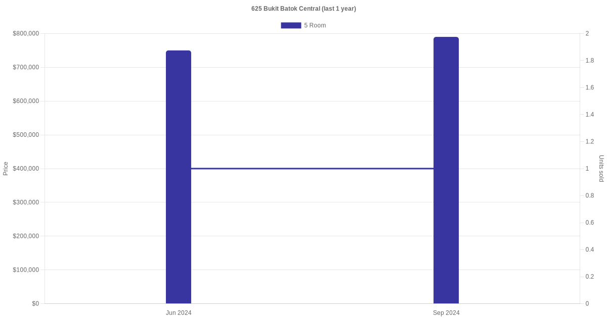 Below is a quick summary of the resale transactions volume and average price trends for the 4 room and 5 room units at 625 Bukit Batok Central.