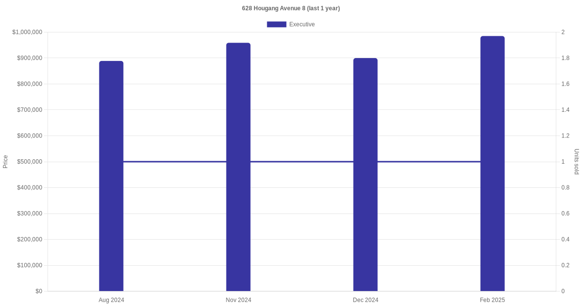 Below is a quick summary of the resale transactions volume and average price trends for the executive units at 628 Hougang Avenue 8.