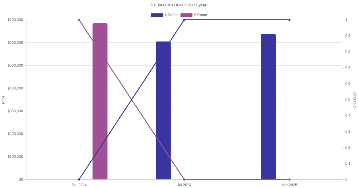 Here's a summary of the rental transactions and price trends for the 4 room and 5 room units at 631 Pasir Ris Drive 3.