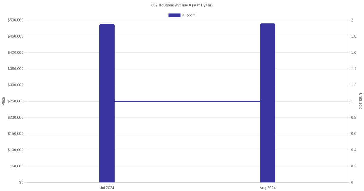 Below is a quick summary of the resale transactions volume and average price trends for the 4 room units at 637 Hougang Avenue 8.
