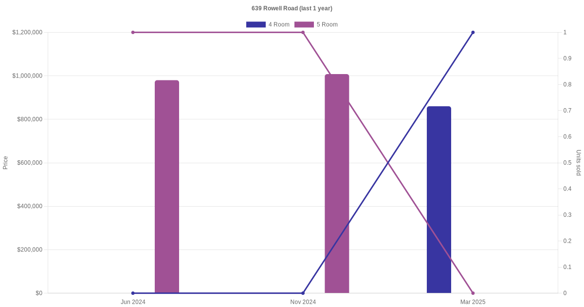 Here's a summary of the rental transactions and price trends for the 4 room and 5 room units at 639 Rowell Road.