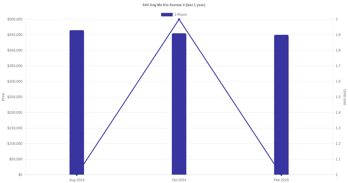 | Apr 2025 | $2,750 | 3 Room | Blk 644 Ang Mo Kio Avenue 4 3 Room | Ang Mo Kio |