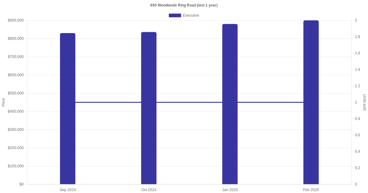 Here's a summary of the rental transactions and price trends for the executive units at 650 Woodlands Ring Road.