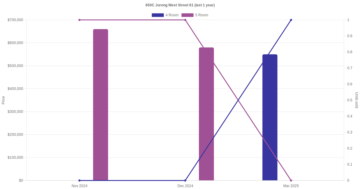 There were a total of 5 resale transactions in the last 3 years for units in block 650C Jurong West Street 61, with the latest one recorded in Aug 2025.