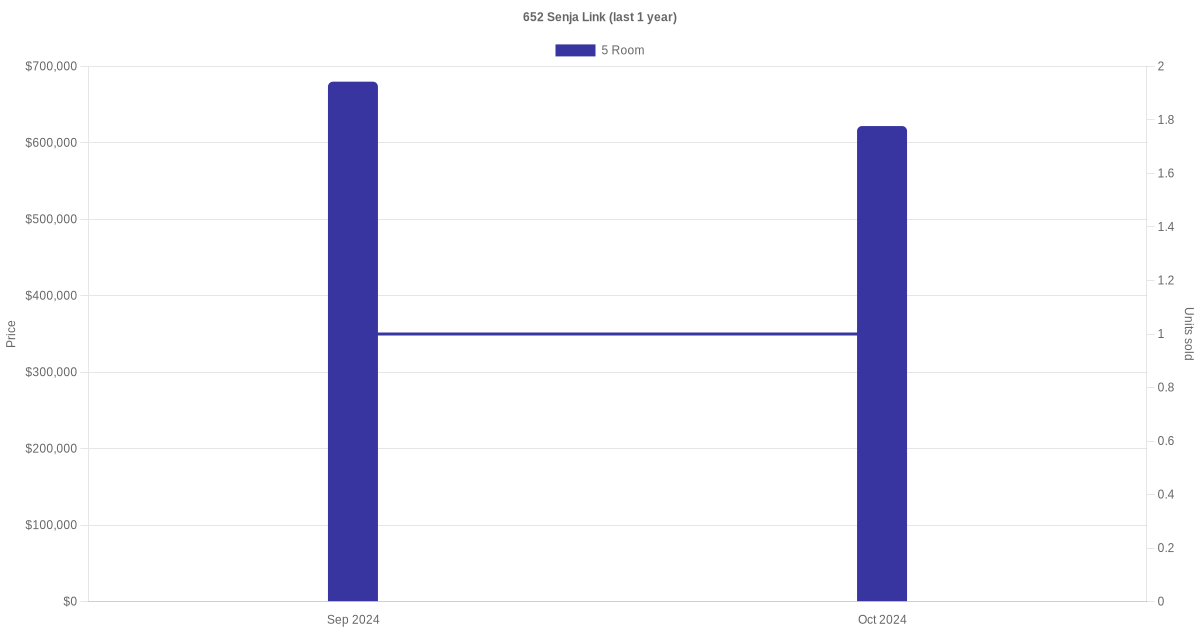| Oct 2024 | $622,000 | $5,655 | 5 Room | Blk 652 Senja Link 5 Room / 110 sqm | 10 to 12 | 110 sqm | Premium Apartment | 2001 |