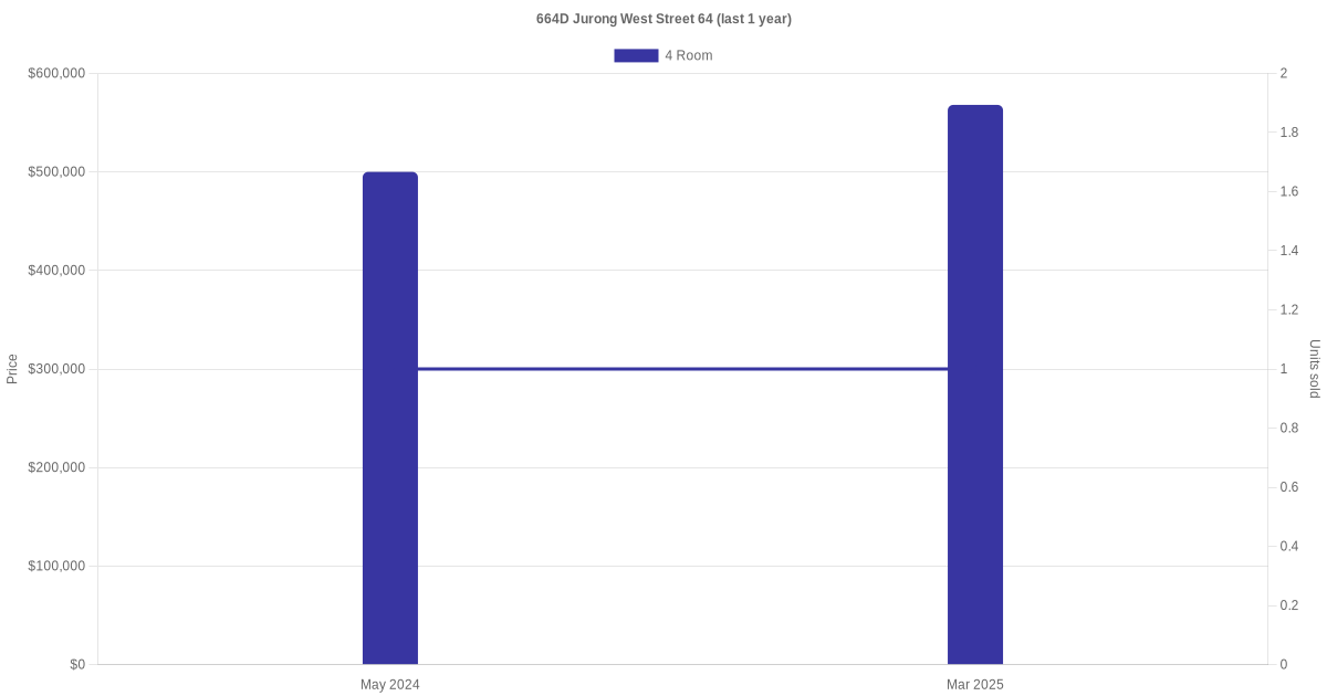 | Mar 2025 | $3,500 | 4 Room | Blk 664D Jurong West Street 64 4 Room | Jurong West |