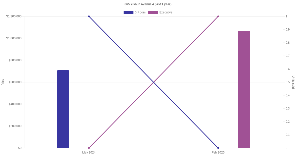 | Mar 2025 | $4,600 | Executive | Blk 665 Yishun Avenue 4 Executive | Yishun |