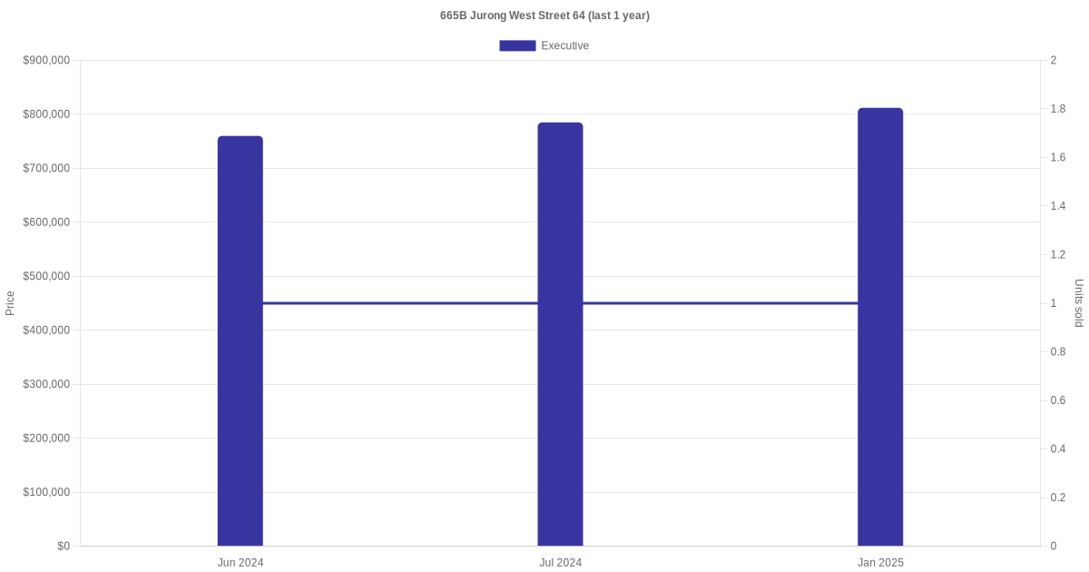 Below is a quick summary of the resale transactions volume and average price trends for the executive units at 665B Jurong West Street 64.