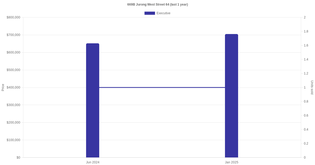 Below is a quick summary of the resale transactions volume and average price trends for the executive units at 669B Jurong West Street 64.