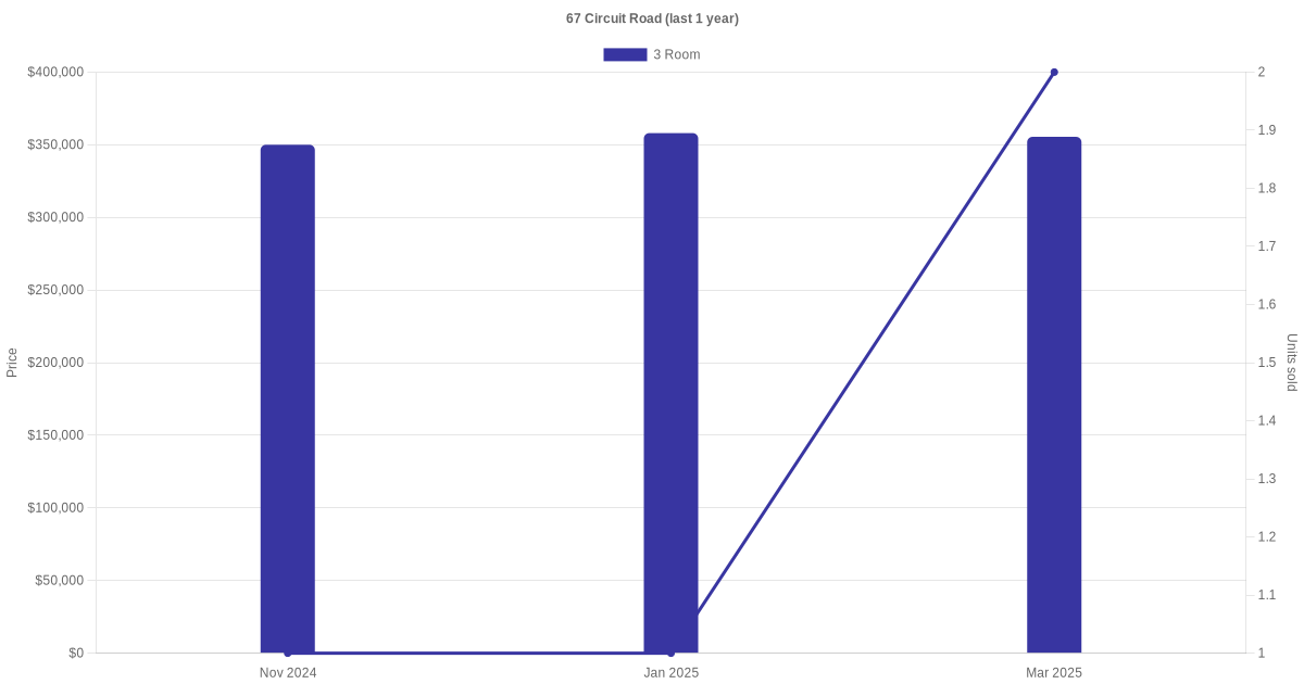 Below is a quick summary of the resale transactions volume and average price trends for the 3 room units at 67 Circuit Road.