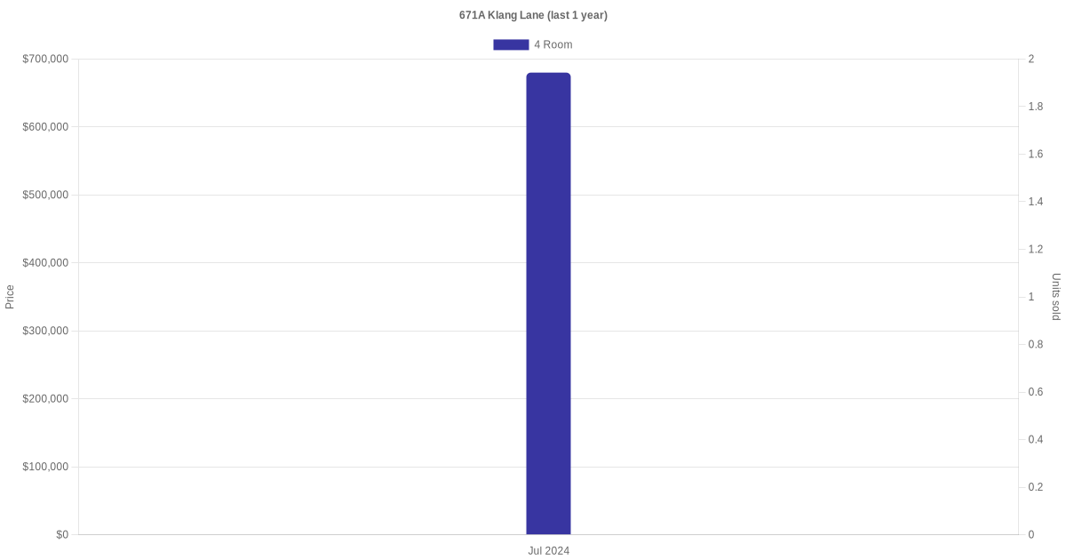 There were a total of 1 resale transactions in the last 3 years for units in block 671A Klang Lane, with the latest one recorded in Jul 2024.