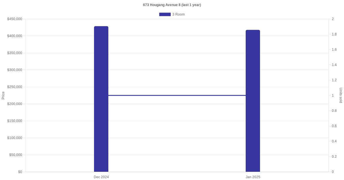 Below is a quick summary of the resale transactions volume and average price trends for the 3 room units at 673 Hougang Avenue 8.