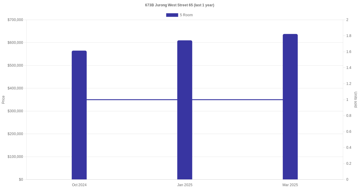 There were a total of 7 resale transactions in the last 3 years for units in block 673B Jurong West Street 65, with the latest one recorded in Jun 2025.