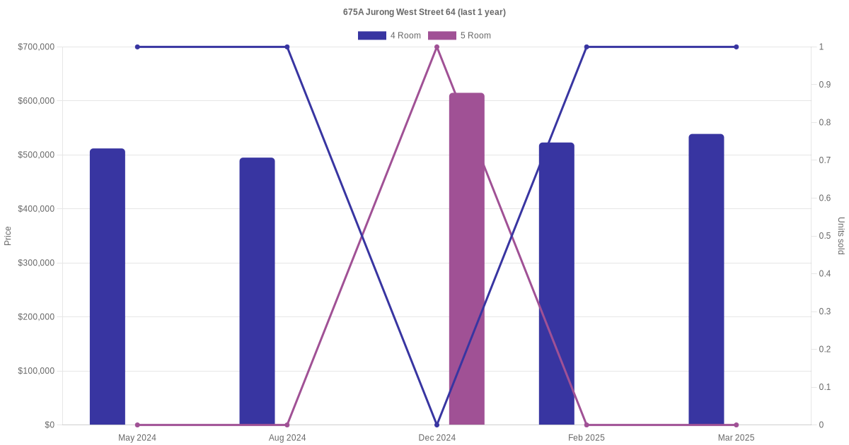 There were a total of 12 resale transactions in the last 3 years for units in block 675A Jurong West Street 64, with the latest one recorded in Dec 2025.