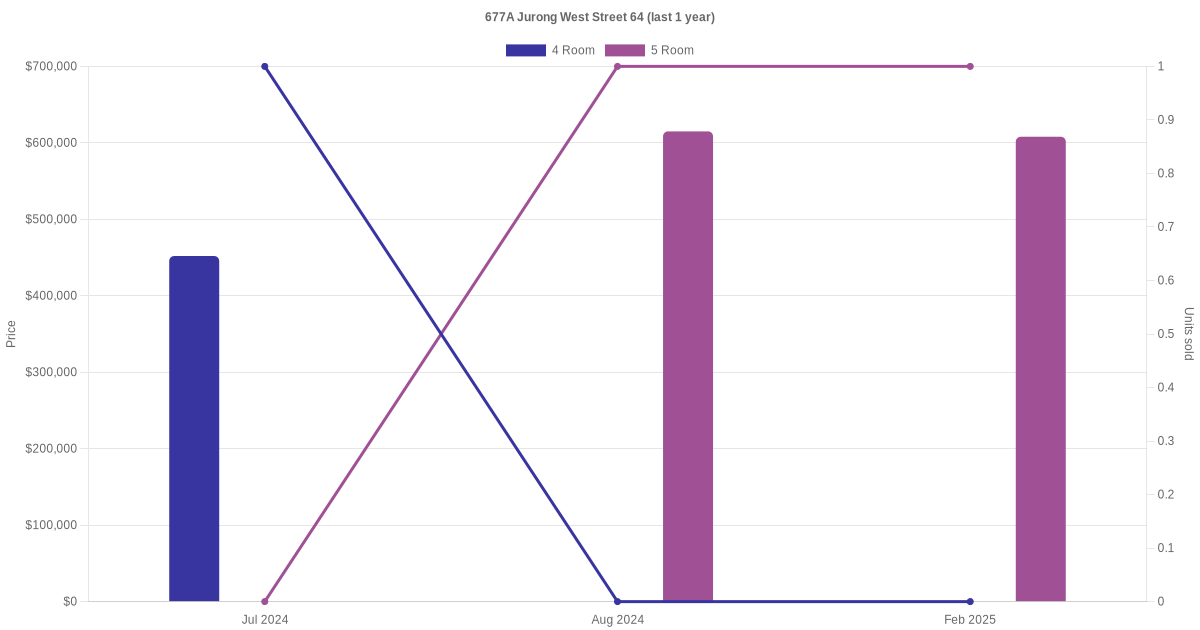 There were a total of 7 resale transactions in the last 3 years for units in block 677A Jurong West Street 64, with the latest one recorded in Dec 2025.
