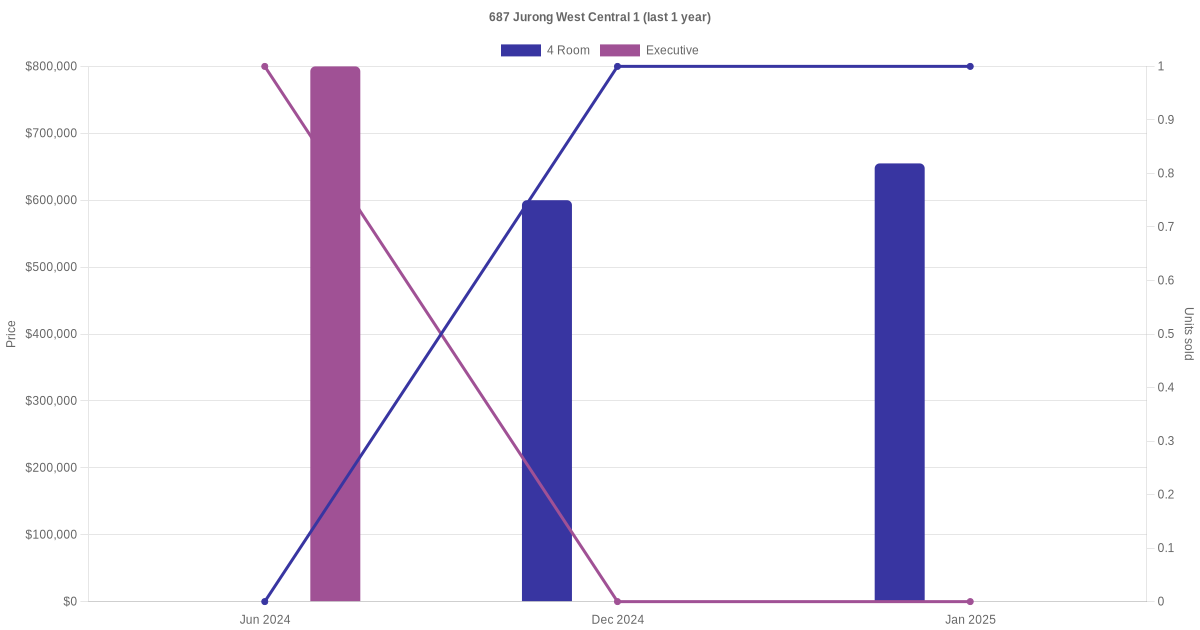 | Sep 2024 | $4,200 | Executive | Blk 687 Jurong West Central 1 Executive | Jurong West |