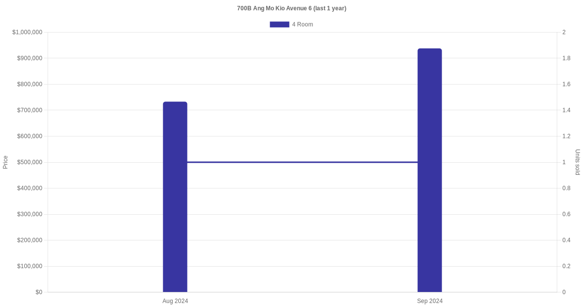 | Aug 2023 | $4,200 | 4 Room | Blk 700B Ang Mo Kio Avenue 6 4 Room | Ang Mo Kio |