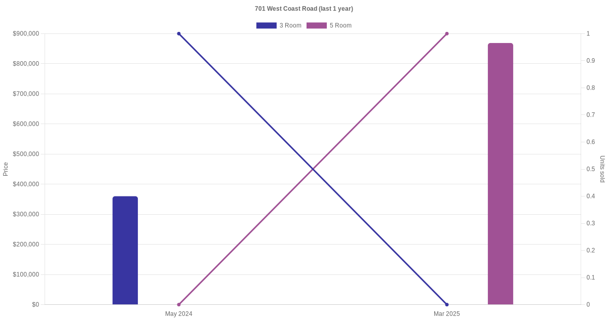 Here's a summary of the rental transactions and price trends for the 3 room, 4 room and 5 room units at 701 West Coast Road.