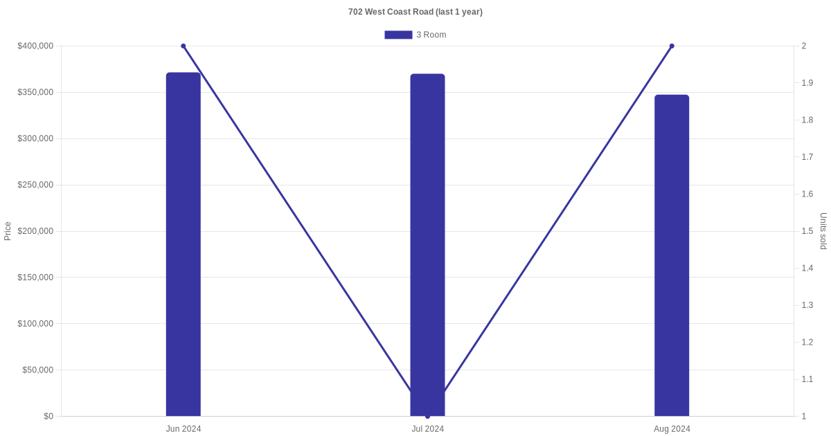 Below is a quick summary of the resale transactions volume and average price trends for the 3 room and 4 room units at 702 West Coast Road.