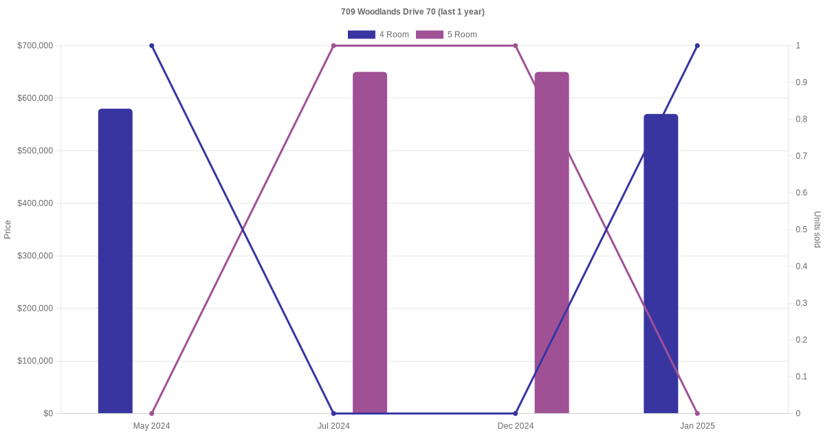 Here's a summary of the rental transactions and price trends for the 4 room and 5 room units at 709 Woodlands Drive 70.
