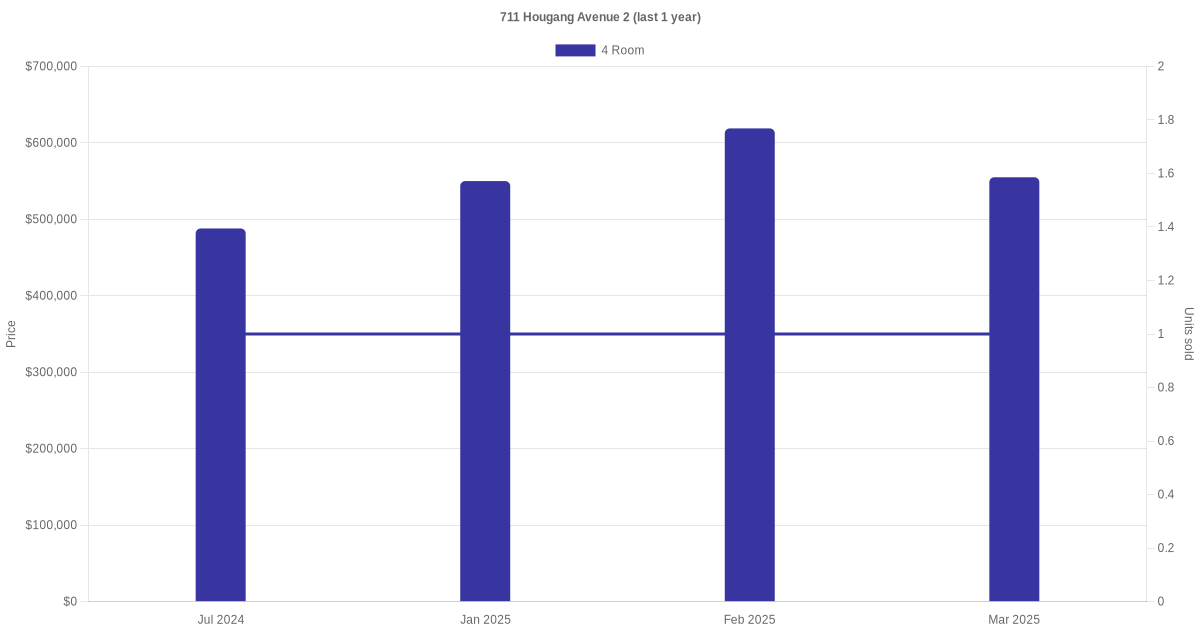 There were a total of 6 resale transactions in the last 3 years for units in block 711 Hougang Avenue 2, with the latest one recorded in Mar 2025.