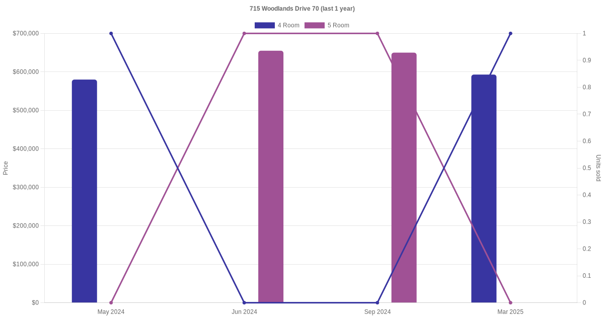 Here's a summary of the rental transactions and price trends for the 4 room and 5 room units at 715 Woodlands Drive 70.