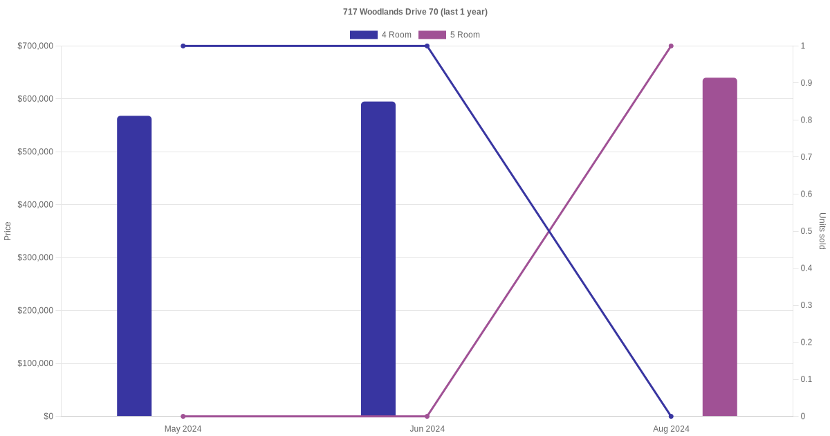Here's a summary of the rental transactions and price trends for the 4 room and 5 room units at 717 Woodlands Drive 70.