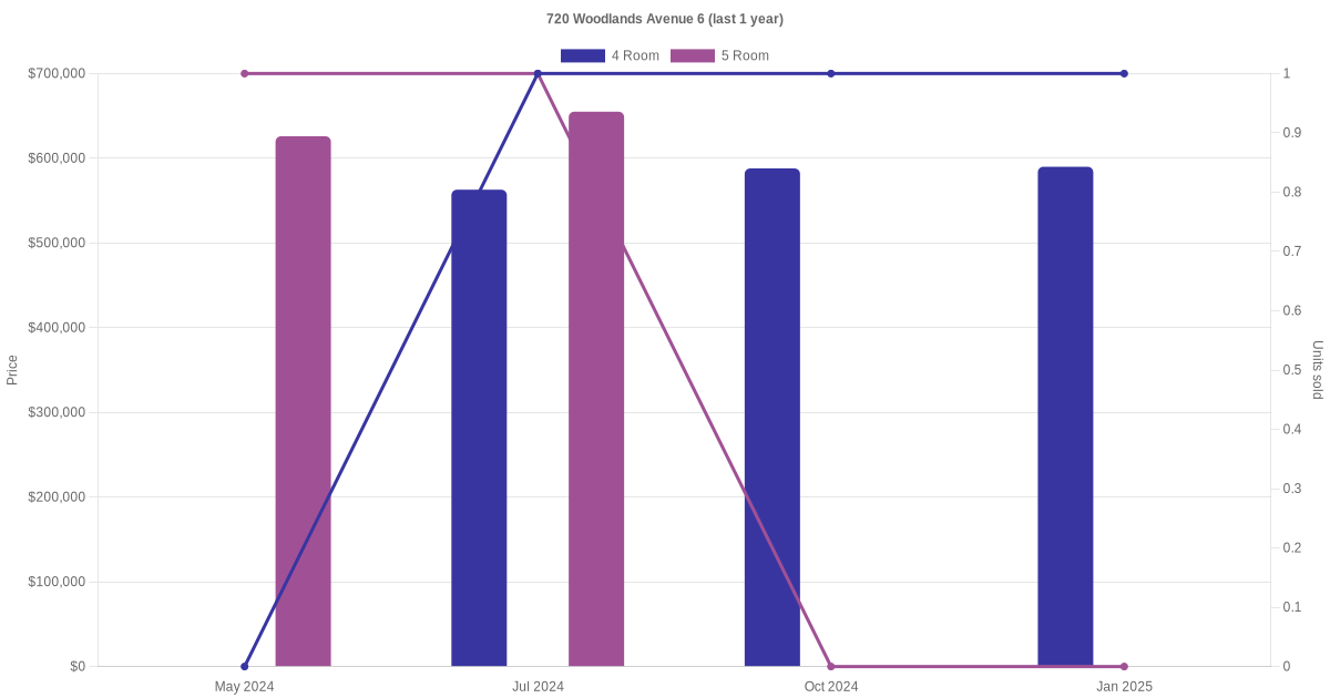 Here's a summary of the rental transactions and price trends for the 4 room and 5 room units at 720 Woodlands Avenue 6.