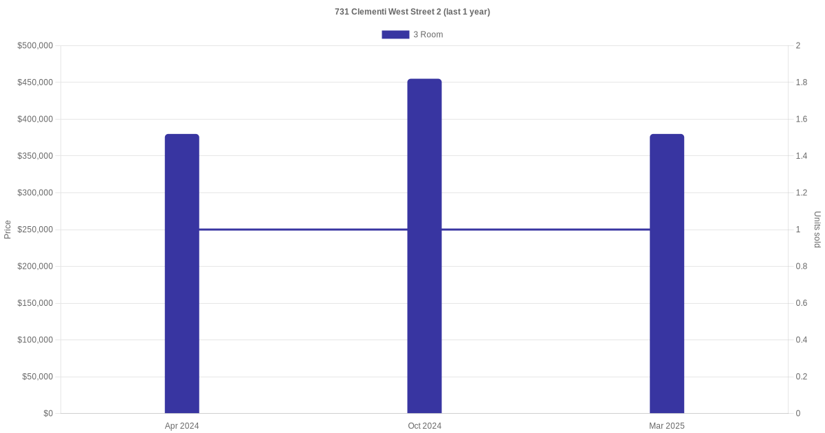 | May 2025 | $2,750 | 3 Room | Blk 731 Clementi West Street 2 3 Room | Clementi |