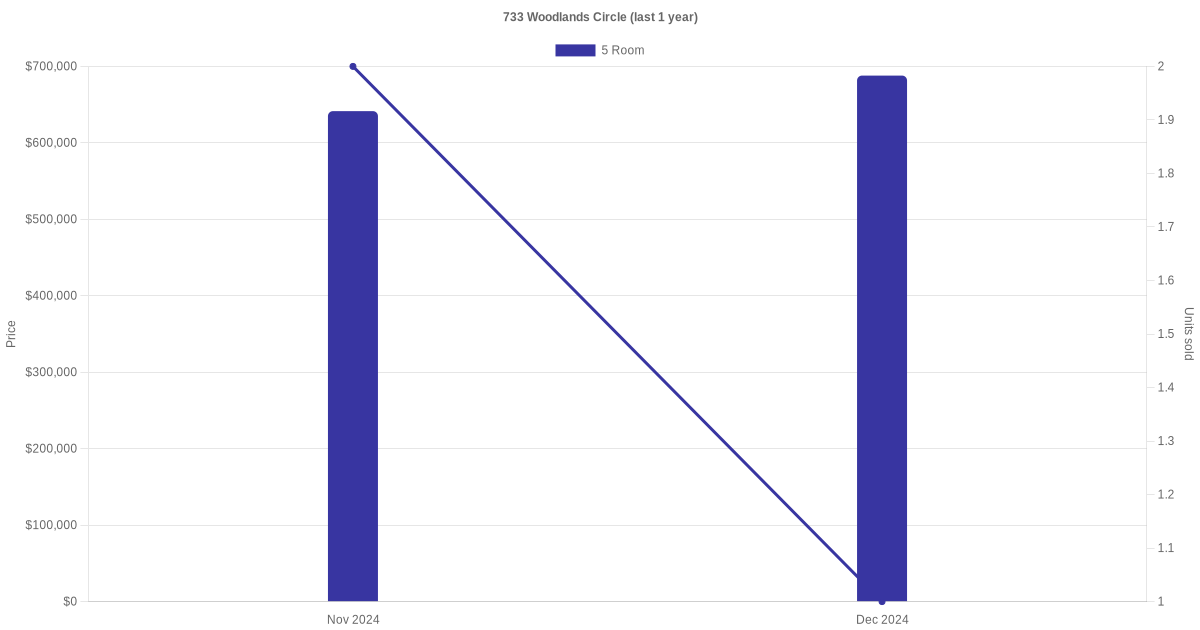Below is a quick summary of the resale transactions volume and average price trends for the 4 room and 5 room units at 733 Woodlands Circle.