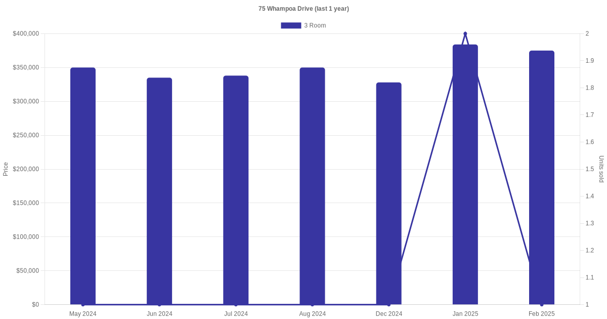 Below is a quick summary of the resale transactions volume and average price trends for the 3 room units at 75 Whampoa Drive.