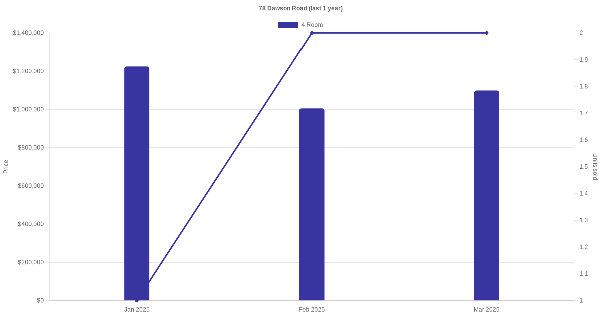 There were a total of 4 rental transactions in the last 3 years for units in block 78 Dawson Road. The latest recorded one was in Mar 2025.