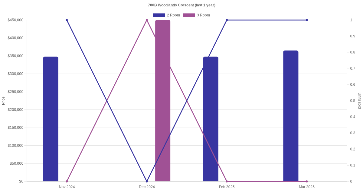 Here's a summary of the rental transactions and price trends for the 2 room and 3 room units at 780B Woodlands Crescent.