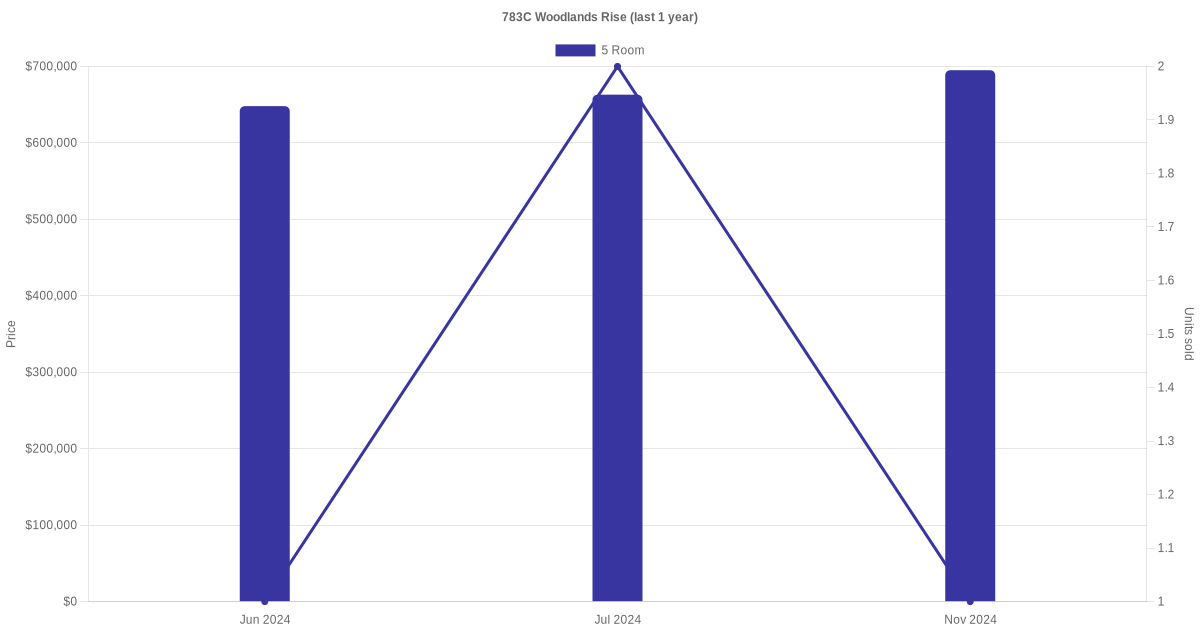 | Nov 2024 | $695,000 | $6,150 | 5 Room | Blk 783C Woodlands Rise 5 Room / 113 sqm | 04 to 06 | 113 sqm | Improved | 2018 |