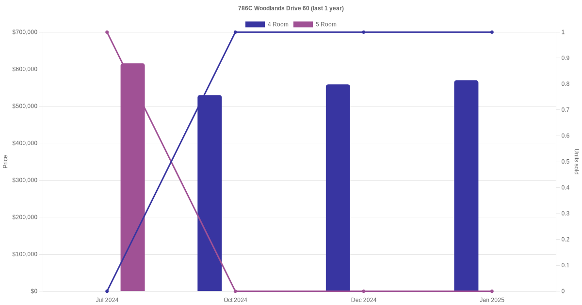 Here's a summary of the rental transactions and price trends for the 4 room and 5 room units at 786C Woodlands Drive 60.