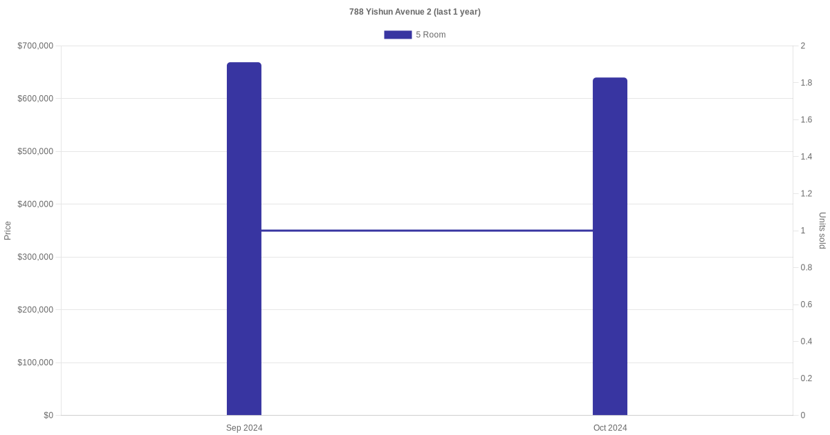 Below is a quick summary of the resale transactions volume and average price trends for the 4 room and 5 room units at 788 Yishun Avenue 2.