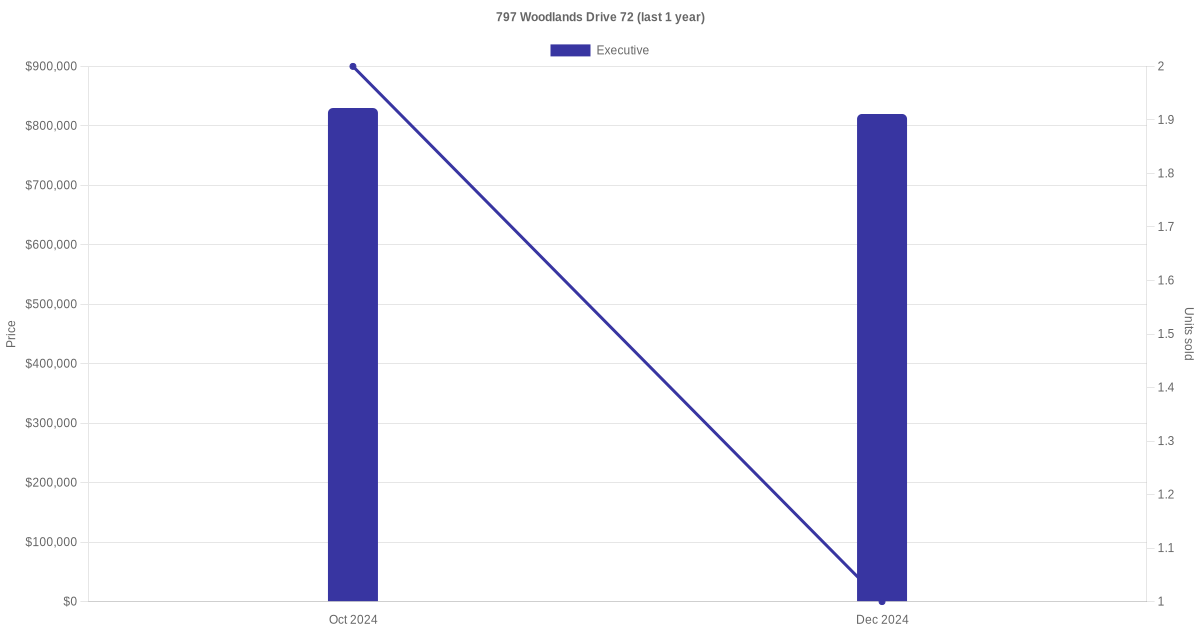 Here's a summary of the rental transactions and price trends for the executive units at 797 Woodlands Drive 72.