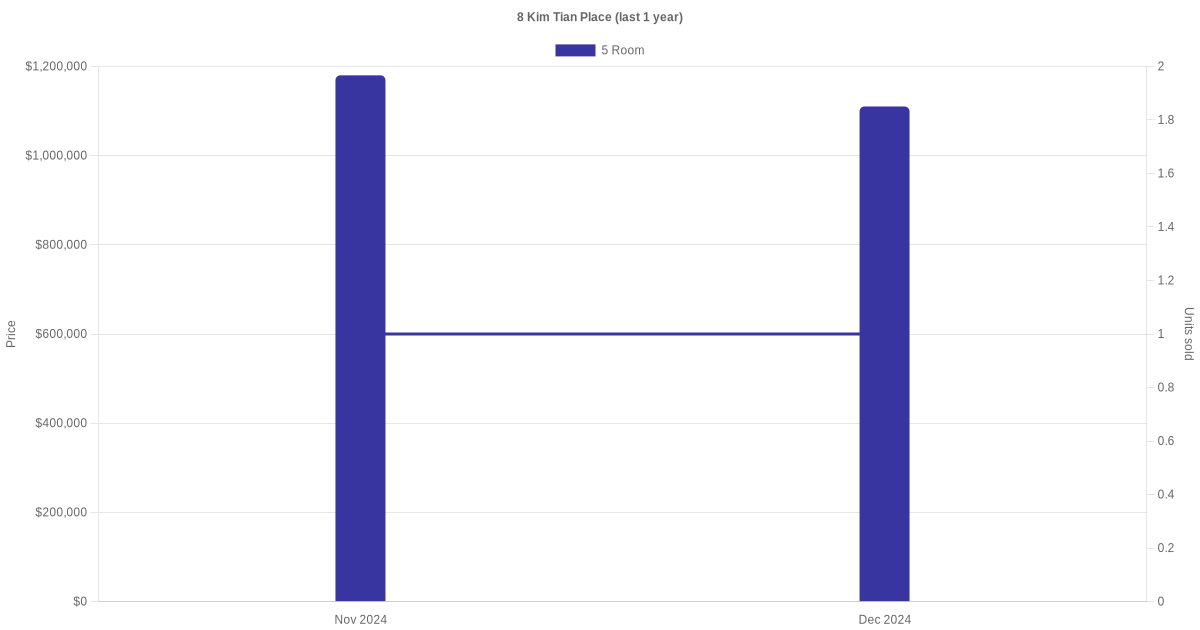 Below is a quick summary of the resale transactions volume and average price trends for the 5 room units at 8 Kim Tian Place.